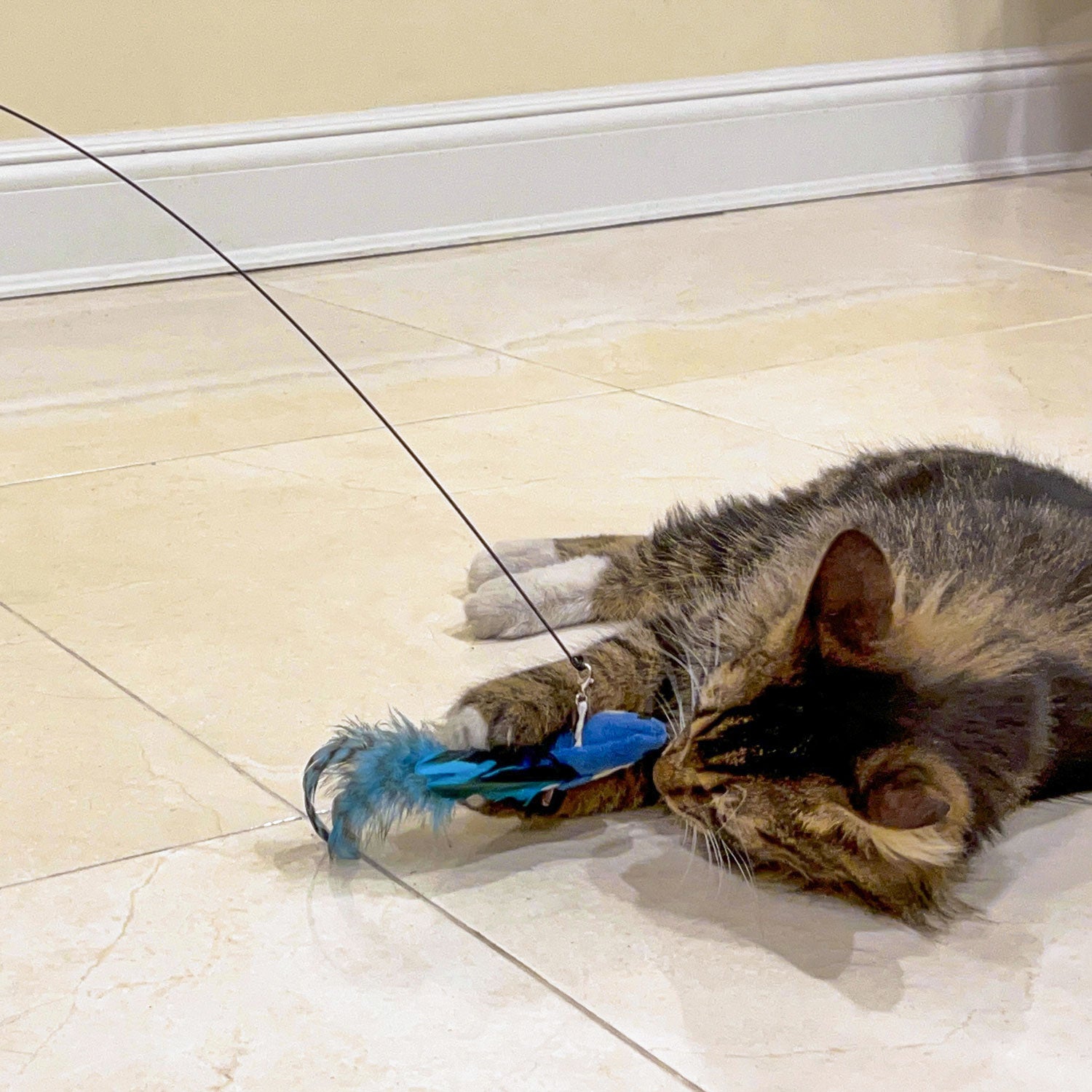 • Upgraded suction cup base and a wire that moves around while your cat plays with the bird.