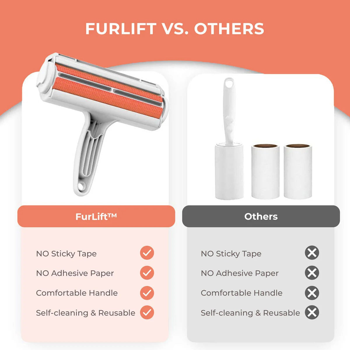 Self-Cleaning & Reusable - unlike single-use roller sheets, the FurLift™ Cat Hair Remover doesn't require any batteries, sticky tape, or adhesive paper. It's designed with a hair receptacle that can be emptied and reused.