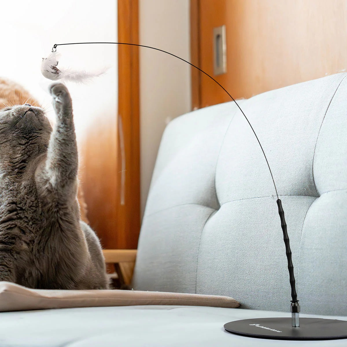 • Self-holding base and a wire that moves around while your cat plays with the bird.